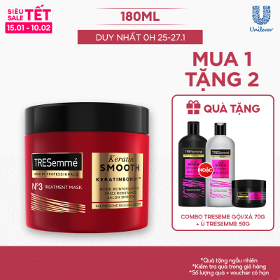Kem Ủ Tóc TRESemmé Keratin Smooth Keratinbond+ 180ml Cho Tóc Khô Xơ Rối Vào Nếp Suôn Mượt